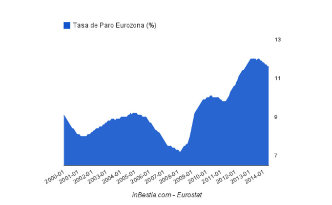 La tasa de paro en la Eurozona se mantiene en el 11,6% Según ha informado hoy Eurostat, la agencia estadística de la Comisión Europea, la tasa de paro en la Eurozona se mantuvo en mayo al mismo nivel que abril, el 11,6%. Esta... 1 de julio, 2014