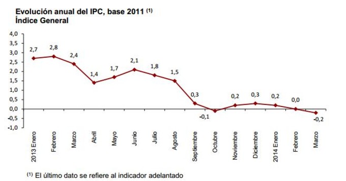 España Inflación Anual -0,2% Marzo Según adelanta hoy el Instituto Nacional de Estadística, la inflación anual en españa volvió a terreno negativo en el mes de marzo de 2014 con una evolución de... 28 de marzo, 2014