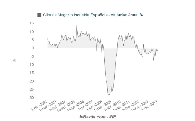 España Actividad Industrial +0,3% Según publica hoy el INE, la cifrar de negocio de la industria española repuntó tres décimas en enero con respecto a diciembre de 2013. No obstante, la evolución anual... 21 de marzo, 2014