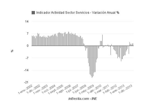 España Sector Servicios +0,5% Enero Según publica hoy la cifra de negocio del sector servicios en España aumentó cinco décimas en enero con respecto a diciembre de 2013 y la evolución anual (imagen) se... 21 de marzo, 2014