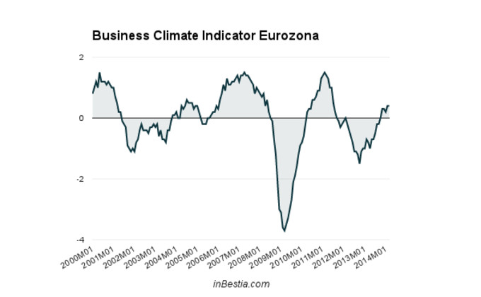 Eurozona Business Climate Indicator 0,4 Según Eurostat, el Business Climate Indicator, la encuesta realizada sobre la situación del sector manufacturero en la Eurozona, se mantuvo en marzo al mismo nivel que en... 31 de marzo, 2014
