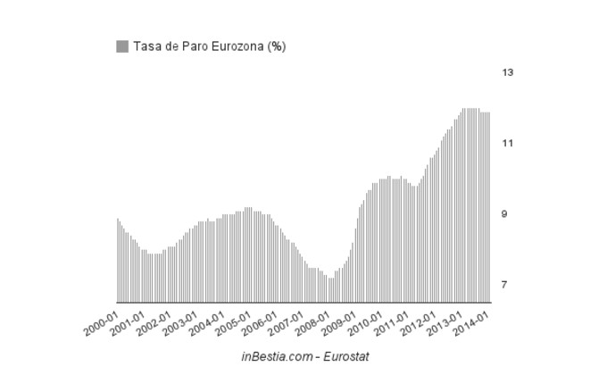 Eurozona Tasa de Paro 11,9% Febrero Según publica hoy Eurostat, la agencia estadística de la Comisión Europea, la tasa de paro en la eurozona (EA-18) permaneció en el 11,9% de la población activa por... 1 de abril, 2014