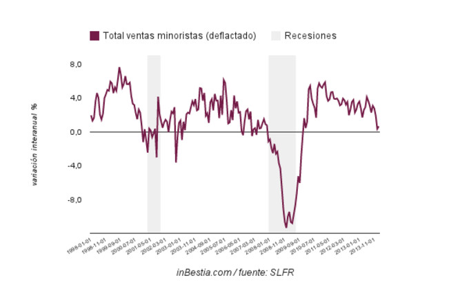 España Comercio Minorista -0,1% Según adelanta hoy el INE el índice de comercio minorista se redujo una décima en febrero con respecto a enero y la evolución anual muestra una contracción del... 28 de marzo, 2014