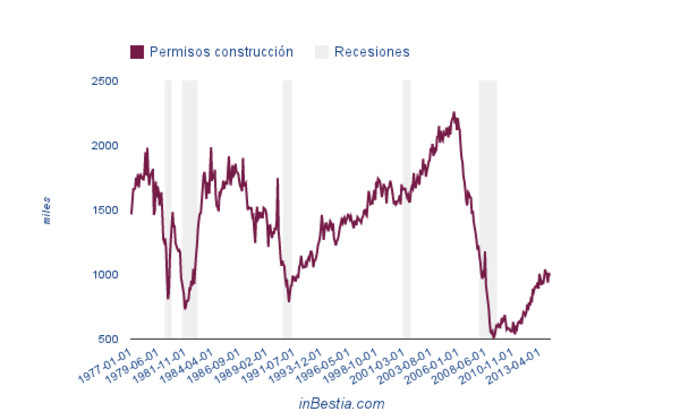 EEUU Licencias Construcción 1.018.000 Febrero El número de licencias de construcción aumentó fuertemente hasta las 1.018.000 en febrero. 18 de marzo, 2014