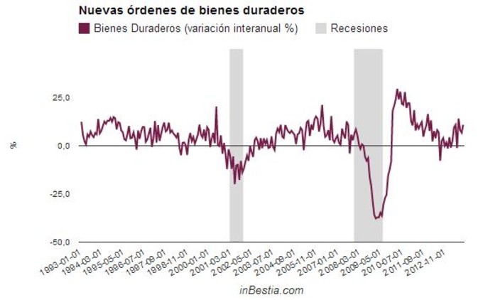 EEUU Pedidos B. Duraderos +3,5% Las órdenes de pedidos de bienes duraderos aumentaron un 3,5% en noviembre con respecto a octubre de este año. 24 de diciembre, 2013