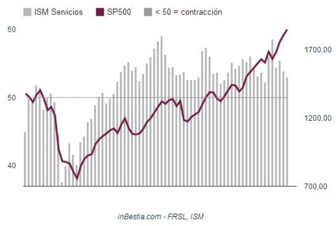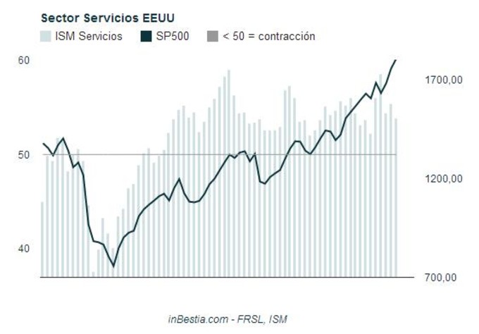 EEUU ISM Sector Servicios 53.9 noviembre Según el instituto ISM el sector servicios en EEUU sigue expandiéndose. El índice que mide la actividad del sector refleja una lectura de 53.9 en noviembre, por debajo de... 4 de diciembre, 2013