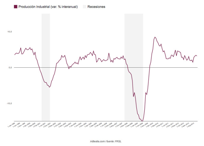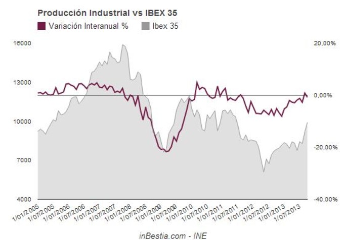 España Producción Industrial -0,83% a/a Hasta octubre de 2013, la producción industrial española se contrajo un -0,83% en términos anuales. Este dato, aunque negativo, es el segundo mejor desde agosto de... 5 de diciembre, 2013
