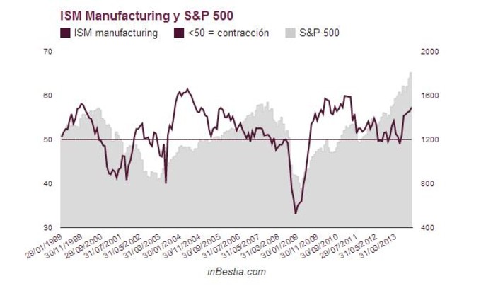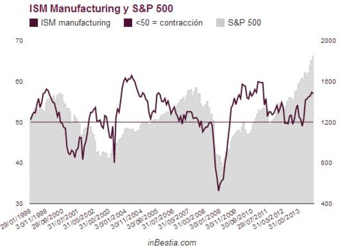 EEUU ISM Sector Manufacturero 57,3 Noviembre El índice que mide la situación del sector manufacturero en EEUU ascendió en noviembre hasta los 57,3 puntos desde los 56,4 de octubre. Un nivel por encima de 50 sugiere... 2 de diciembre, 2013