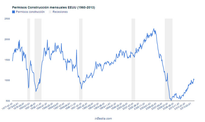 EEUU LIcencias Construcción 1.004 K Noviembre El número de licencias de construcción solicitadas en EEUU se mantuvo por encima del millón por segundo mes consecutivo al registrarse 1.004.000 licencias en noviembre.... 18 de diciembre, 2013