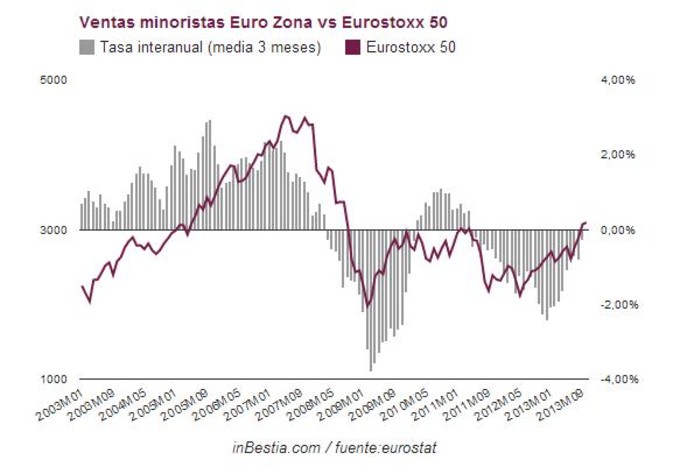 Eurozona Ventas Minoristas -0,2% m/m Las ventas al por menos descendieron dos décimas en octubre con respecto a septiembre de este año. La evolución anual, por segundo mes consecutivo es positiva con un... 4 de diciembre, 2013