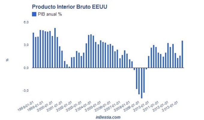 EEUU PIB 3º Trimestre +3,6% (segunda revisión) La segunda revisión del PIB del tercer trimestre en EEUU, ha supuesto una positiva sorpresa al haberse revisado el dato de crecimiento anual del PIB de 2,8% hasta 3,6%, lo... 5 de diciembre, 2013