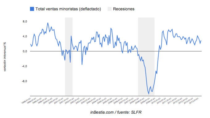 España Ventas Minoristas +1,91% anual Las ventas al por menor se afianzan en terreno positivo en términos anuales con un aumento de las ventas del 1,91% en noviembre de 2013 con respecto a noviembre de 2012.... 30 de diciembre, 2014