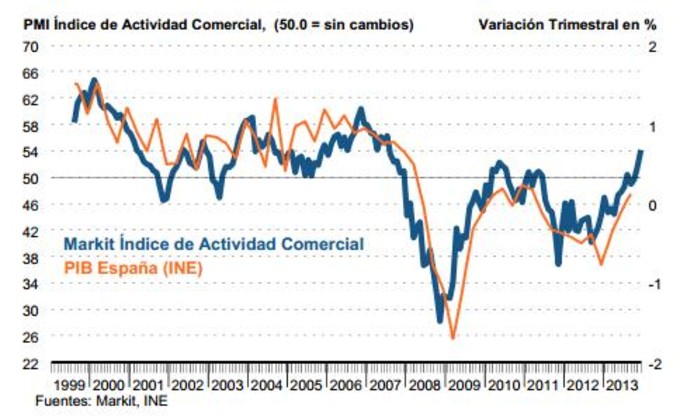 España Sector Servicios PMI 54 Diciembre Según Markit Economics la actividad del sector servicios se aceleró en diciembre. El índice PMI Service Business Activity ascendió hasta 54.2 en diciembre desde los 51.5... 6 de enero, 2014