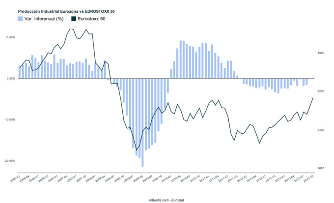 Eurozona Producción Industrial -1,1% octubre Según publica hoy Eurostat, la producción industrial de la eurozona se redujo un 1,1% en octubre con respecto a septiembre de este mismo año. La evolución anual es del... 12 de diciembre, 2013
