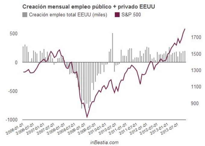 EEUU +203.000 empleos creados Noviembre Según datos oficiales publicados hoy, EEUU creó en noviembre 203.000 puestos de trabajo. En línea con lo esperado. 6 de diciembre, 2013