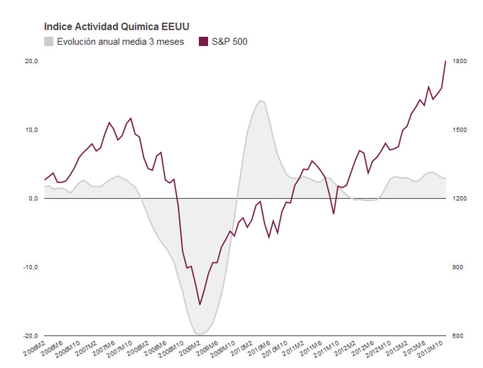EEUU Índice Sector Químico +2,8% a/a La actividad económica en el sector químico según el American Chemistry Council ascendió una décima en diciembre con respecto a noviembre y su evolución anual es de un... 17 de diciembre, 2013