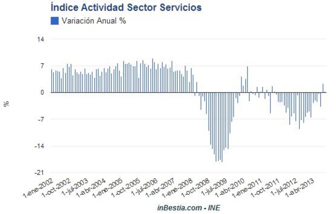 España Sector Servicios +0,3% anual Por segundo mes consecutivo (octubre 2013) la actividad del sector servicios en España se muestra expansiva con respecto al mismo mes del año anterior según publica hoy... 19 de diciembre, 2013