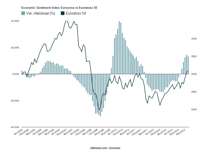 Eurozona Sentimiento Económico 98.5 Noviembre Según Eurostat, el Economic Sentiment Index, el índice global que valora la situación económica de la eurozona según los resultados de las encuestas a la... 9 de diciembre, 2013