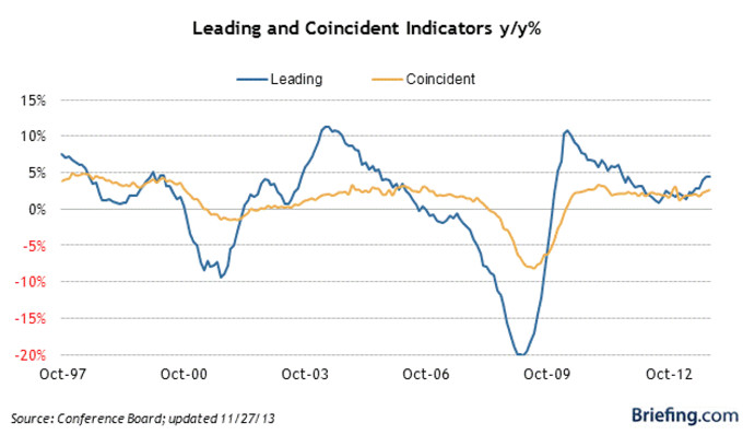 EEUU Indicador Líder +0,2% El indicador adelantado a la situación económica de EEUU elaborado por The Conferece Board aumentó dos décimas en octubre y el mes de septiembre ha sido revisado al alza... 27 de noviembre, 2013