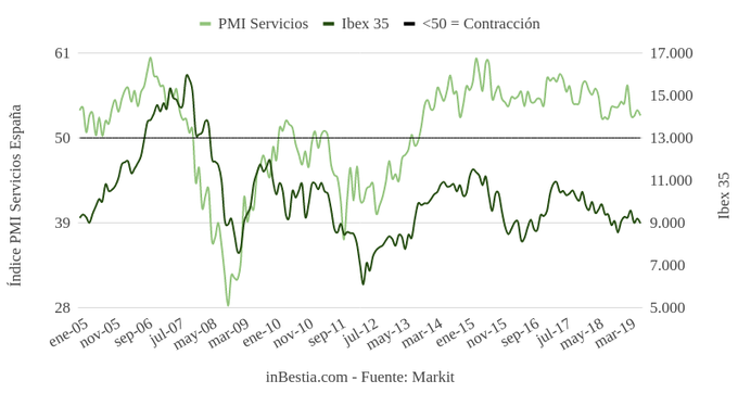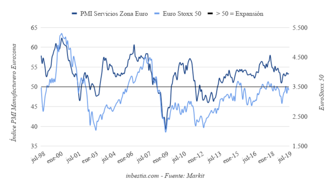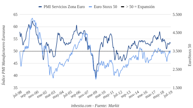 Eurozona: Índice Servicios PMI 53,2 en julio El dato adelantado de julio del Índice de Servicios PMI ha sido ha sido revisado a la baja una décima hasta 53,2. Parece que rebota el indicador tras una... 5 de agosto, 2019