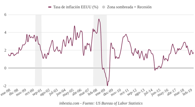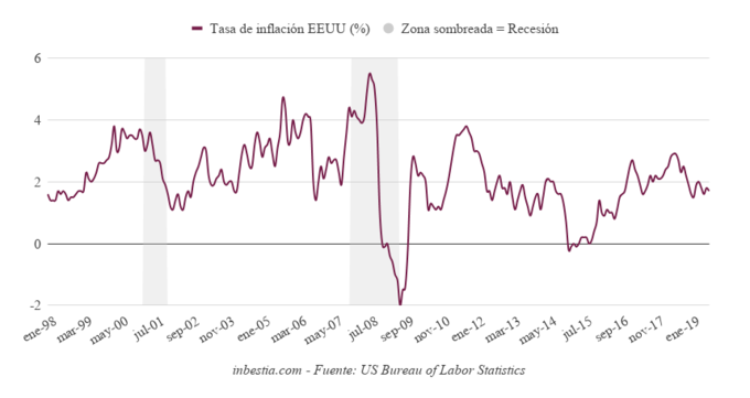 EEUU: Tasa de inflación anual 1,8% en julio La tasa de inflación anual en Estados Unidos se sitúa en el 1,8% en julio, dos décimas superior al mes anterior. La tasa de inflación anual mide la variación... 13 de agosto, 2019