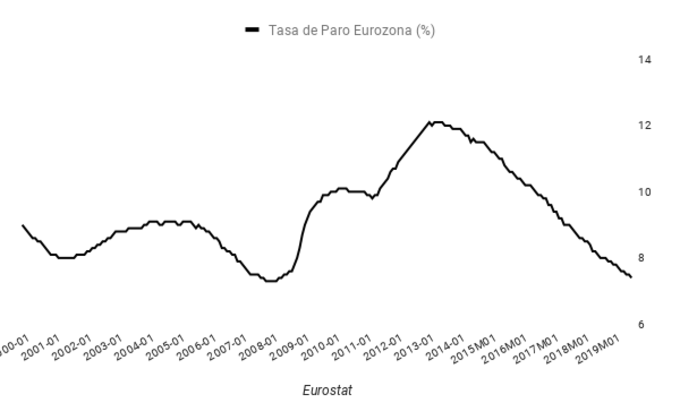 Eurozona: tasa de paro 7,4% Según datos difundidos esta mañana por Eurostat, la agencia estadística de la Unión Europea, la tasa de paro de la eurozona descendió en una décima en el mes de agosto... 30 de septiembre, 2019