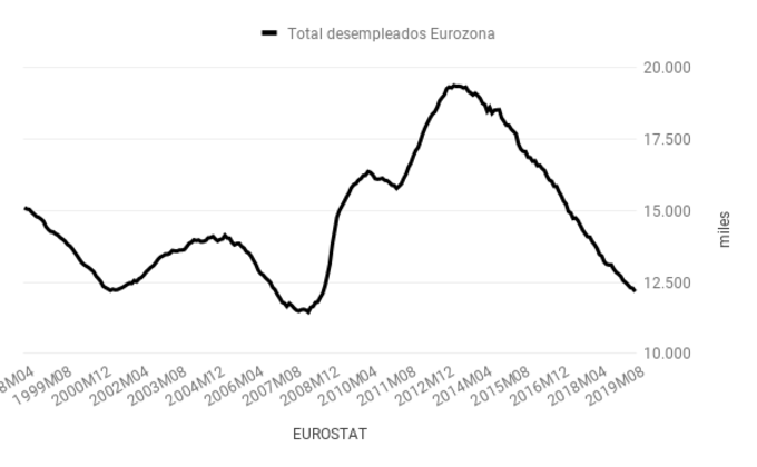 Eurozona: -115.000 parados en agosto Según datos difundidos esta mañana por Eurostat, la agencia estadística de la Unión Europea, el número de parados descendió en el mes de agosto en 115.000 personas,... 30 de septiembre, 2019
