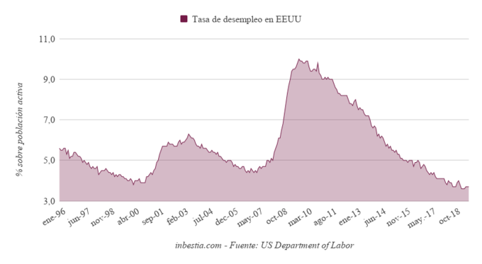 EEUU: Tasa de paro 3,7% en agosto Según los datos del Departamento de Trabajo de Estados Unidos, la tasa de paro se mantuvo en agosto por tercer mes consecutivo en el 3,7%. El desempleo venía... 6 de septiembre, 2019