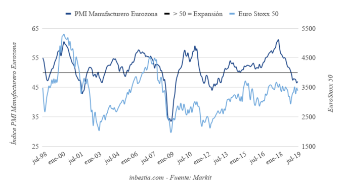 Eurozona: PMI Manufacturero 47 en agosto El indicador de actividad industrial elaborado por Markit Economics para la zona euro ha confirmado el dato adelantado de agosto en 47, superior al del mes... 3 de septiembre, 2019