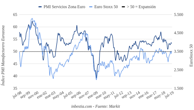 Eurozona: Flash PMI Servicios 53,3 en julio Según el dato adelantado de Markit, la actividad del sector servicios en la zona euro se desaceleró ligeramente en julio, marcando el índice una lectura de 53,3... 24 de julio, 2019