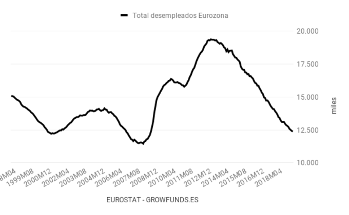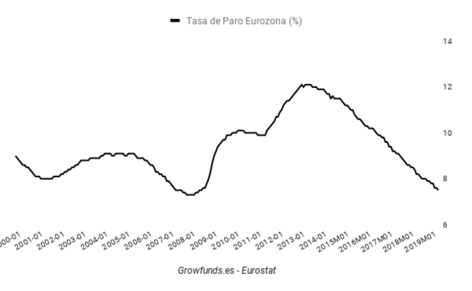 Eurozona: la tasa de paro cae hasta el 7,5% El número total de personas desempleadas en el conjunto de la eurozona declinó en 103.000 en el mes de mayo hasta un total de 12.348.000, la cifra más baja desde... 1 de julio, 2019