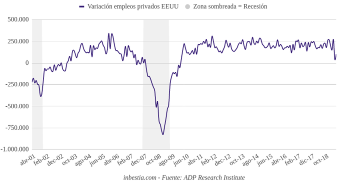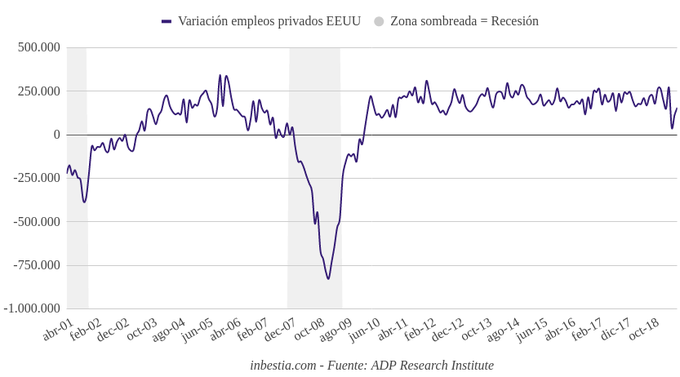 EEUU: +102.000 empleos en el sector privado en junio La economía norteamericana creó 102.000 empleos en el sector privado durante el mes de junio según la entidad privada Automatic Data Processing. Este dato se encuentra... 3 de julio, 2019