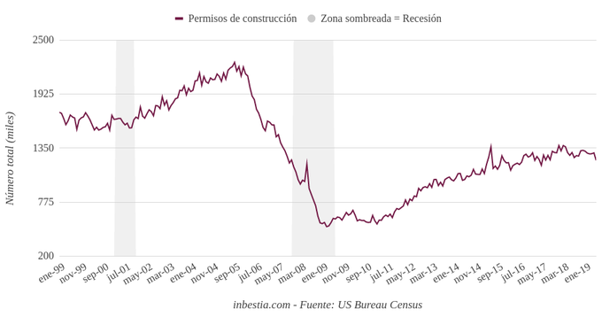 EEUU: Permisos de construcción 1.220.000 en junio El número de viviendas autorizadas por permisos de construcción en EEUU en los últimos 12 meses fue de 1.220.000 en junio, ligeramente por debajo del dato revisado... 17 de julio, 2019
