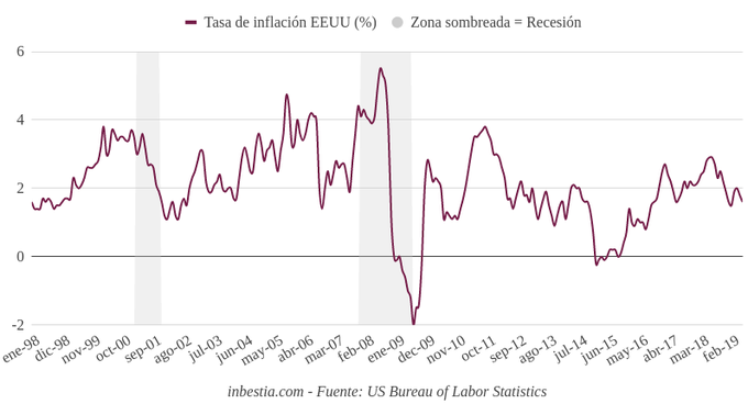 EEUU: Tasa de inflación anual 1,6% en junio La tasa de inflación anual en Estados Unidos se sitúa en el 1,6% en junio, dos décimas inferior al mes anterior. La tasa de inflación anual mide la... 11 de julio, 2019