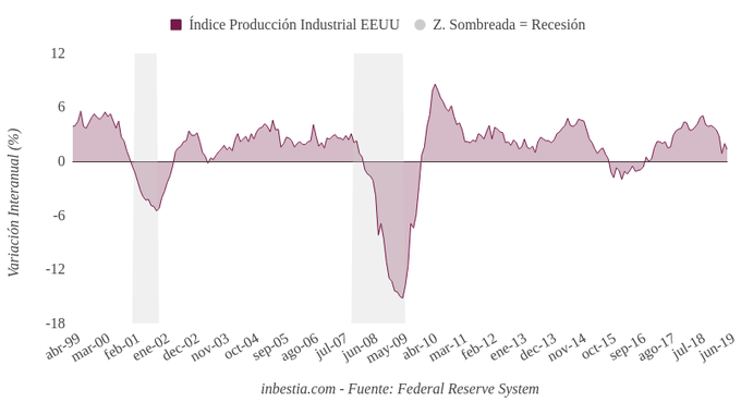 EEUU: Índice de Producción Industrial +1,3% interanual en junio El índice de producción industrial en EEUU se mantuvo invariable en junio con respecto al mes anterior, acumulando un aumento del 1,3% en los últimos 12 meses. Este ritmo... 17 de julio, 2019