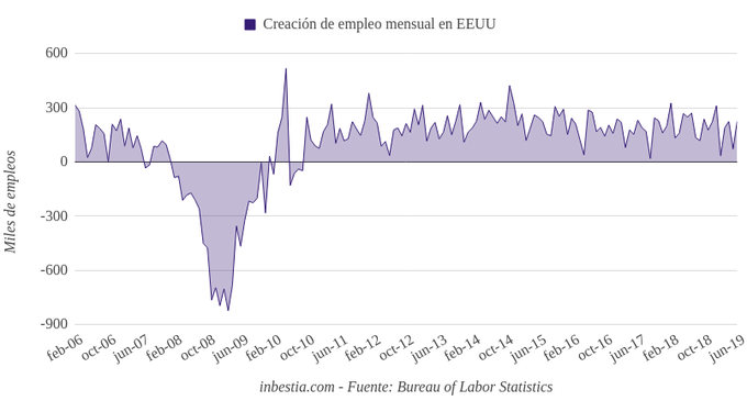 EEUU creó 224.000 empleos en junio La economía norteamericana creó 224.000 empleos en junio según datos oficiales publicados hoy por la Oficina de Estadísticas de Trabajo en EEUU. Este dato se... 5 de julio, 2019