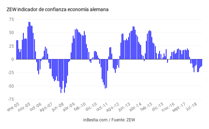 Alemania: indice de confianza ZEW -13,4 en febrero El índice de confianza económica a seis meses vista (ZEW), una encuesta realizada entre 350 expertos financieros, registra una lectura negativa por undécimo mes... 19 de febrero, 2019