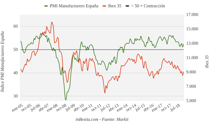 España: PMI Manufacturero 52,4 en enero El indicador de actividad industrial elaborado por Markit Economics ha establecido el dato de enero para España en el nivel de 52,4, claramente por encima de la lectura del... 5 de febrero, 2019