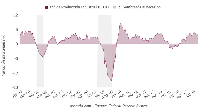 EEUU: Índice de Producción Industrial +3,8% interanual en enero El índice de producción industrial en EEUU descendió un 0,6% en enero con respecto al mes anterior, acumulando un aumento del 3,8% en los últimos 12 meses. Este ritmo de... 15 de febrero, 2019