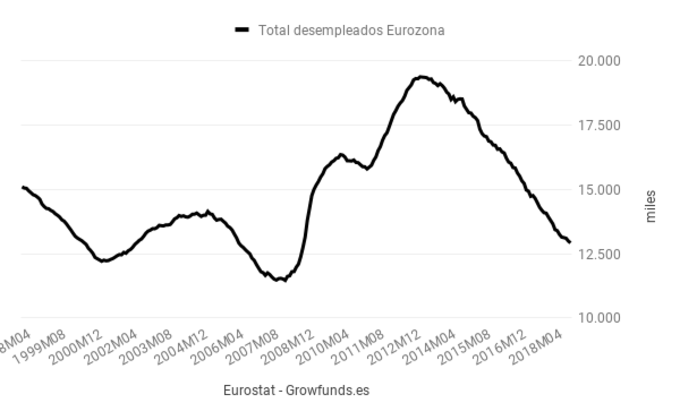 Eurozona: el paro declinó en 75.000 personas en diciembre Según informa Eurostat, la agencia estadística de la Unión Europea, el número de parados registrados en la eurozona, declinó en 75.000 personas en el mes de diciembre,... 31 de enero, 2019