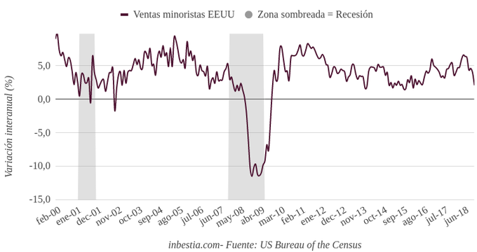 EEUU: Ventas minoristas +2,1% interanual en diciembre Según el Instituto Nacional de Estadística estadounidense (US Bureau Census), las ventas minoristas descendieron un 1,2% en diciembre respecto al mes anterior. En cuanto a... 14 de febrero, 2019