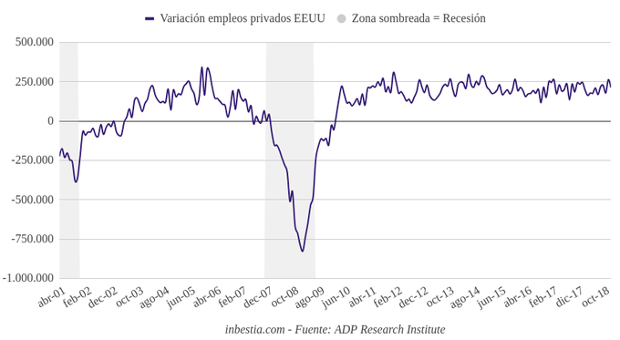 EEUU: +213.000 empleos en el sector privado en enero La economía norteamericana creó 213.000 empleos en el sector privado durante el mes de enero, según la entidad privada Automatic Data Processing. Este dato se encuentra... 30 de enero, 2019