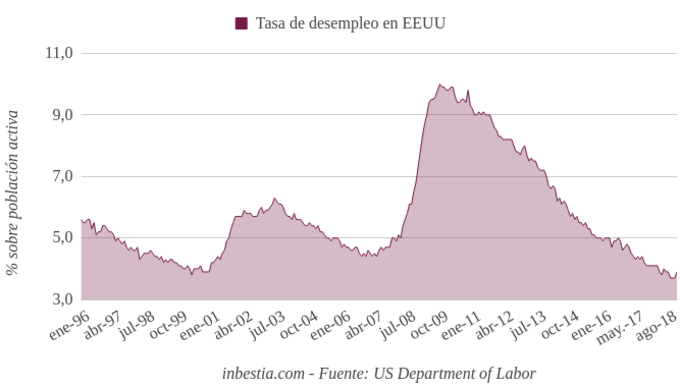 EEUU: Tasa de paro 4% en enero Según los datos del Departamento de Trabajo de Estados Unidos, la tasa de paro aumentó una décima hasta el 4% en enero. El desempleo venía cayendo desde 2009 y la... 1 de febrero, 2019