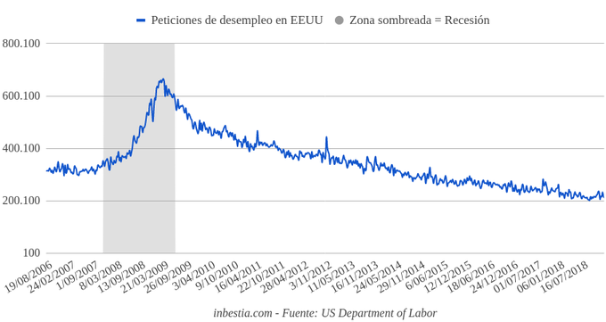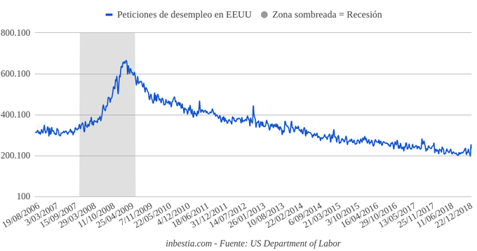 EEUU: Peticiones de paro 234.000 Durante la pasada semana se solicitaron 234.000 nuevos seguros de desempleo en los Estados Unidos, una cifra inferior al dato de anterior de 253.000. El indicador se ha... 8 de febrero, 2019