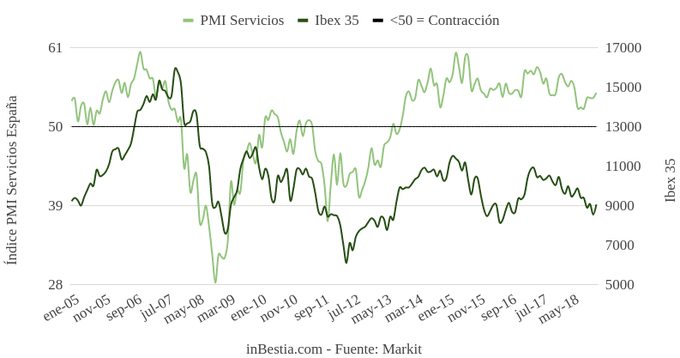 España: Índice Servicios PMI 54,7 en enero Según Markit, la actividad del sector servicios en España aceleró su ritmo de expansión en enero, pasando el Índice PMI Servicios de 54 a 54,7. Se estabiliza de momento... 5 de febrero, 2019