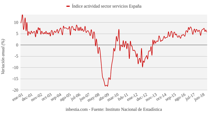 España: Actividad Sector Servicios +5,7% interanual en noviembre Según el Instituto Nacional de Estadística, el índice de actividad del sector servicios aumentó un 0,6% en noviembre con respecto al mes anterior. Se trata de un dato... 21 de enero, 2019