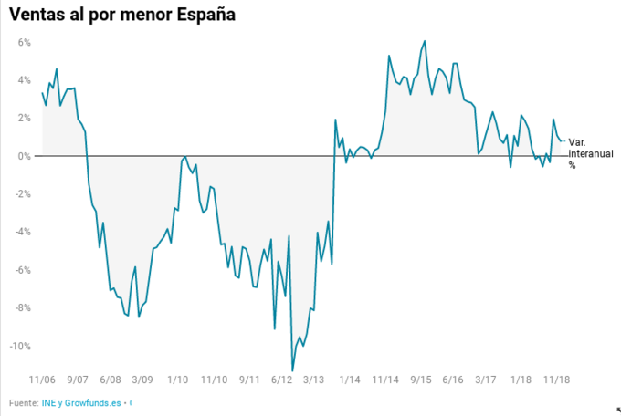 España: ventas minoristas +0,79% anual en diciembre Según datos difundidos esta mañana por el Instituto Nacional de Estadística español, el comercio minorista declinó seis décimas en diciembre con respecto a noviembre,... 30 de enero, 2019
