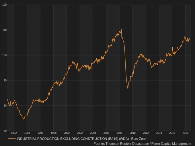 Eurozona: producción industrial -0,3% en septiembre El índice de producción industrial del conjunto de la zona del euro declinó tres décimas en septiembre con respecto a agosto, y muestra un crecimiento del 0,9% en el... 14 de noviembre, 2018