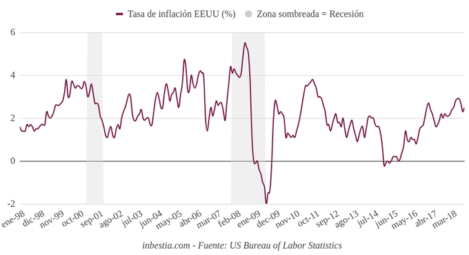 EEUU: Tasa de inflación anual 2,5% en octubre La tasa de inflación anual en Estados Unidos se sitúa en el 2,5% en octubre, dos décimas superior al mes anterior. La tasa de inflación anual mide la variación... 14 de noviembre, 2018