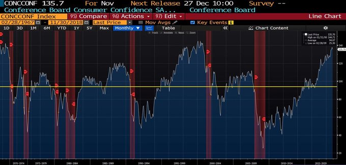 EEUU: confianza del consumidor 135,7 noviembre La confianza de los consumidores según el índice elaborado por The Conference Board declinó ligeramente en noviembre hasta los 135,7 puntos, desde los 137,9 del mes... 27 de noviembre, 2018
